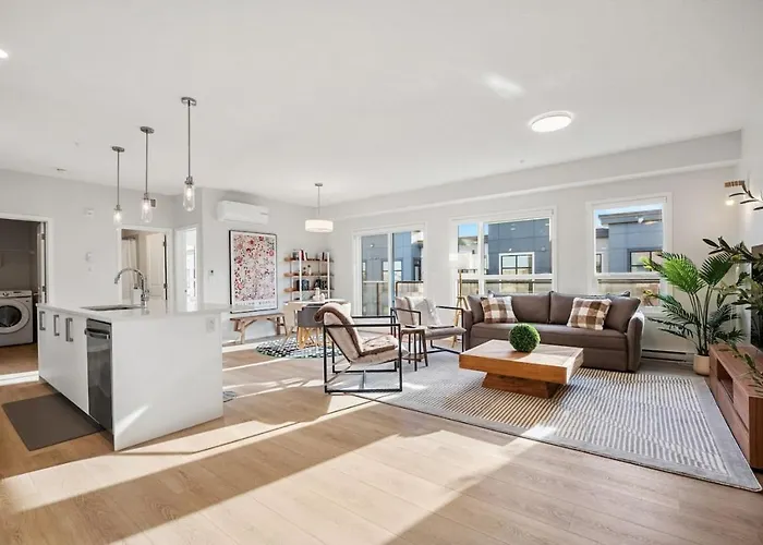 O Very Spacious Luxury Apartment With Ac, 70" Smart Tv With Netflix, Free Underground Parking & More inclui varanda e local de descanso com controle de temperatura para o máximo conforto. Este apartamento inclui 2 quartos. Os visitantes irão desfrutar do conforto de uma casa de banho com secador de cabelo, lençóis de banho e toalhas no o alojamento. Máquina de lavar, casa de banho separada e chuveiro também podem ser encontrados.
